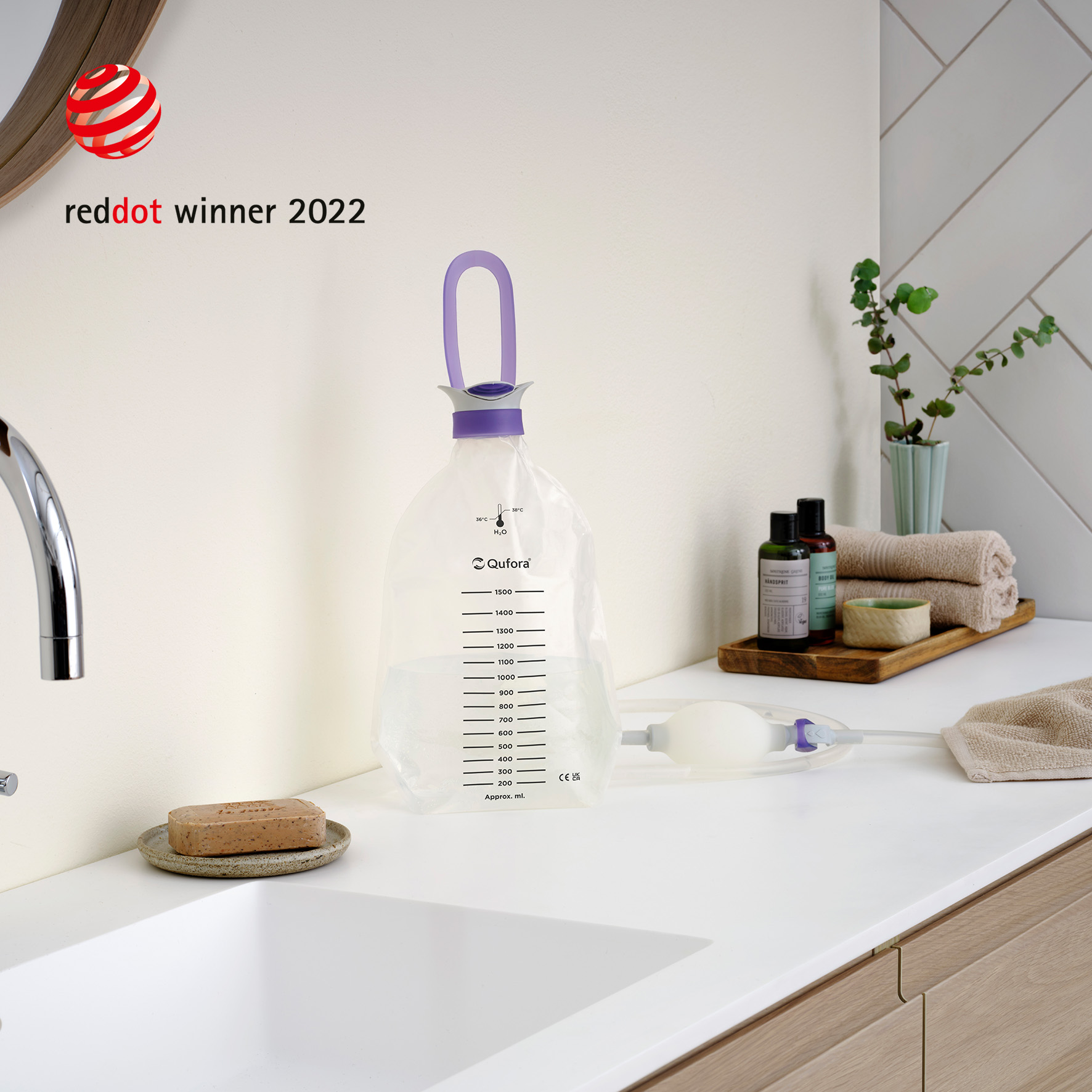Qufora IrriSedo MiniGo ist die neueste Produktlösung von Qufora für Anwender, die nur eine geringe Wassermenge für die Darmirrigation benötigen.