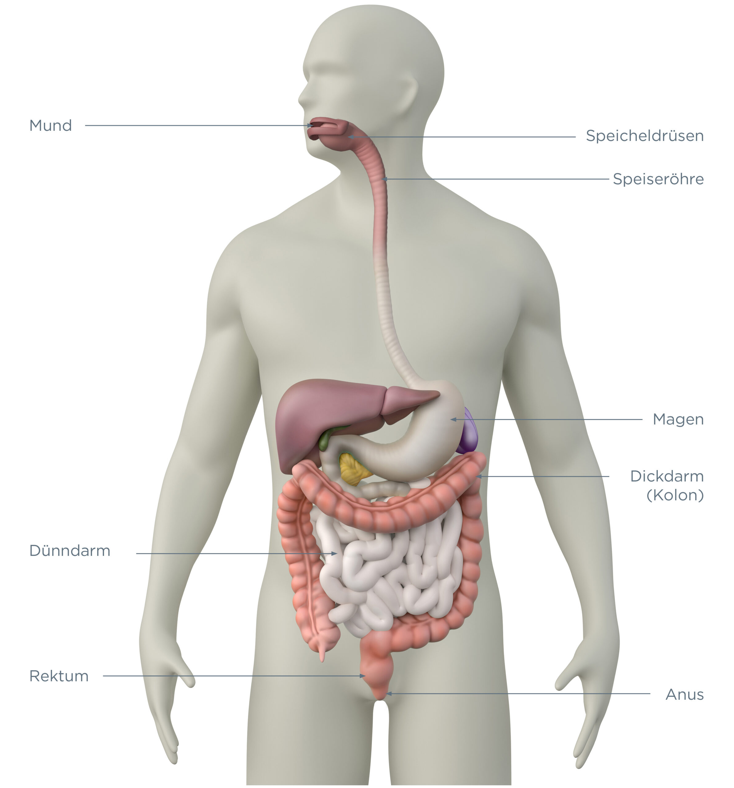 Der Darm ist Teil des Verdauungssystems (Magen-Darm-Trakt oder Gastrointestinaltrakt) und hilft unserem Körper, Nährstoffe und Flüssigkeiten aus den Nahrungsmitteln, die wir essen und trinken, aufzunehmen.