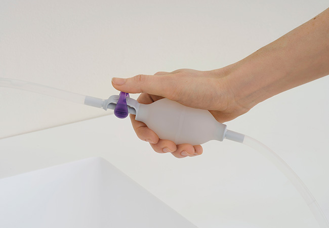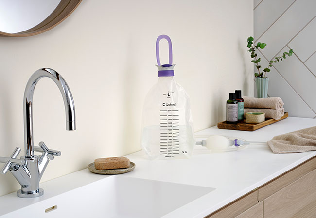Entdecken Sie Qufora IrriSedo Flow, ein neuartiges Darmirrigationssystem mit einer innovativen Steuerung des Wasserflusses, welches intuitiv zu bedienen ist und auf individuelle Anwendungssituationen eingestellt ist.