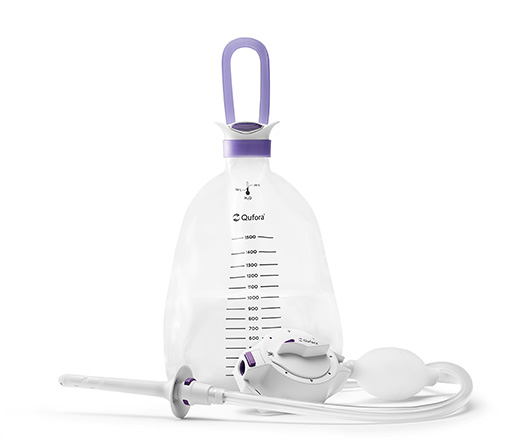 Qufora IrriSedo Klick wurde für eine einfache Anwendung entwickelt, um ein Gefühl der Sicherheit bei der Darmirrigation zu vermitteln. Es wurde für die Durchführung im Sitzen auf oder über der Toilette entwickelt und eignet sich für Menschen, die die Unterstützung eines wasserbefüllbaren Ballons benötigen, der den Katheter während der Irrigation in Position hält.