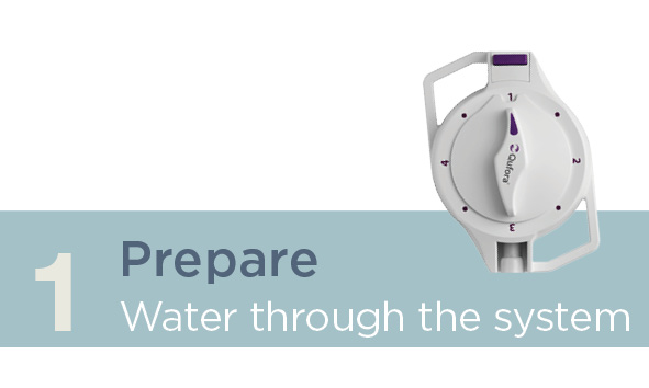 Der Regler führt im Uhrzeigersinn intuitiv durch die vier Schritte des Irrigationsvorgangs. Auf den mit einem Punkt markierten Positionen wird der Wasserfluss gestoppt. Dies bietet die Möglichkeit, nach jedem Schritt zu pausieren, um im eigenen Tempo vorzugehen.