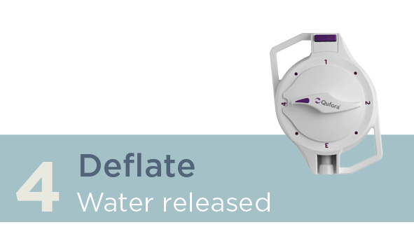 Qufora IrriSedo Klick verfügt über einen Katheter mit einem Ballon, der mit Wasser befüllt wird, wenn sich der Katheter im Enddarm befindet. Die weiche, runde und anpassungsfähige Form des Ballons bildet beim Befüllen mit Wasser eine Dichtung, die den Katheter und das eingespülte Wasser während der Irrigation in Position hält.