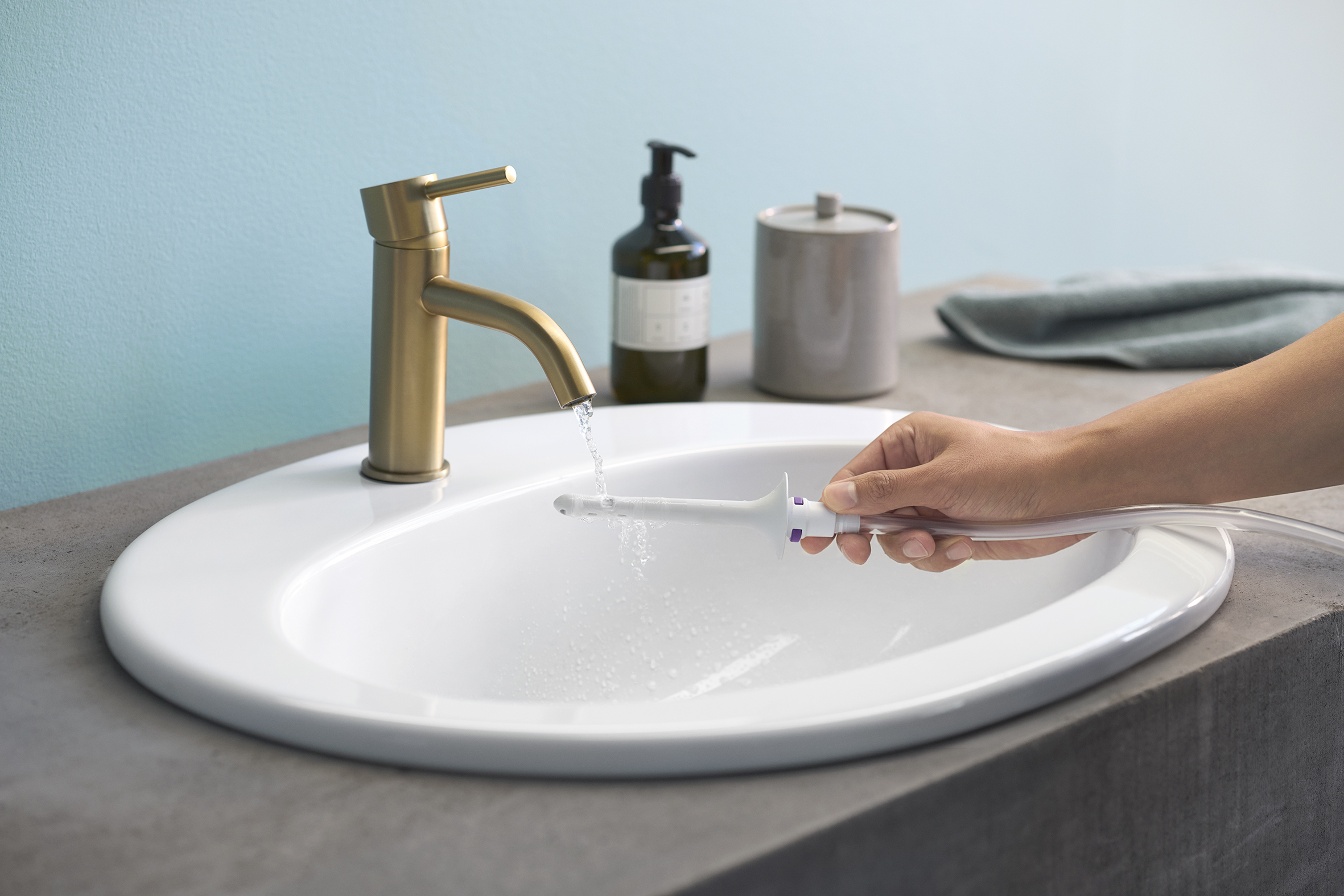 Verstauen Sie das System zu Hause oder unterwegs diskret in der praktischen Kulturtasche – sie ist wasserabweisend und hat einen Zugriemen und eine Schlaufe zum einfachen Öffnen und Schließen.